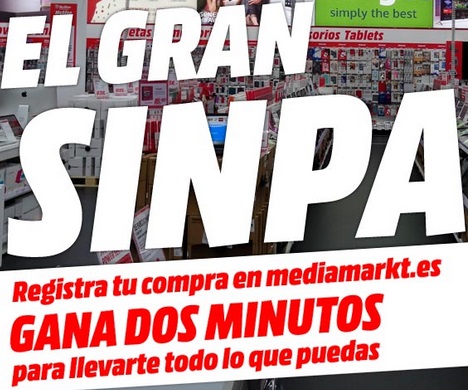 Llévate todo eso y más en una tarde, ya que gracias a »El gran sinpa de Media Markt» puedes llevarte totalmente gratis todo lo que te de tiempo a coger durante dos minutos.